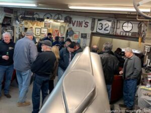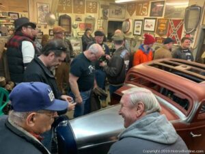 If it’s February, Snowing and Cold it’s time to trek to the MECCA of EAST COAST HOT RODDERS … Rolling Bones Hot Rod Shop in NY. This is the place full of hot rod owners, who come from all over to listen to the gospel. For nearly a decade, Ken Schmidt & Keith Cornell have opened the doors to their shop to welcome visitors from as far as CA, MI, PA, VA and even the UK & Sweden and not to mention a huge base from New York and surrounding East Coast states. They come to check out their latest builds, fill up on killer food, and talk hot rods till the wee hours of the morning. This year the weather was warm for a change, in the 20’s vs. other years when they were in a Deep Freeze for this annual get together.