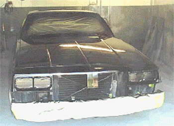 ![]() Four coats of black with one coat of clear before car is masked for stripes & lettering |