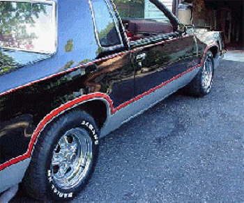 | Drivers side emblem & striping painted | Passenger side emblem & striping painted. No decals |