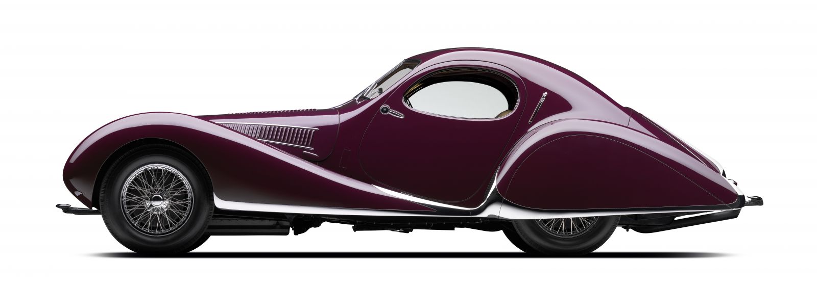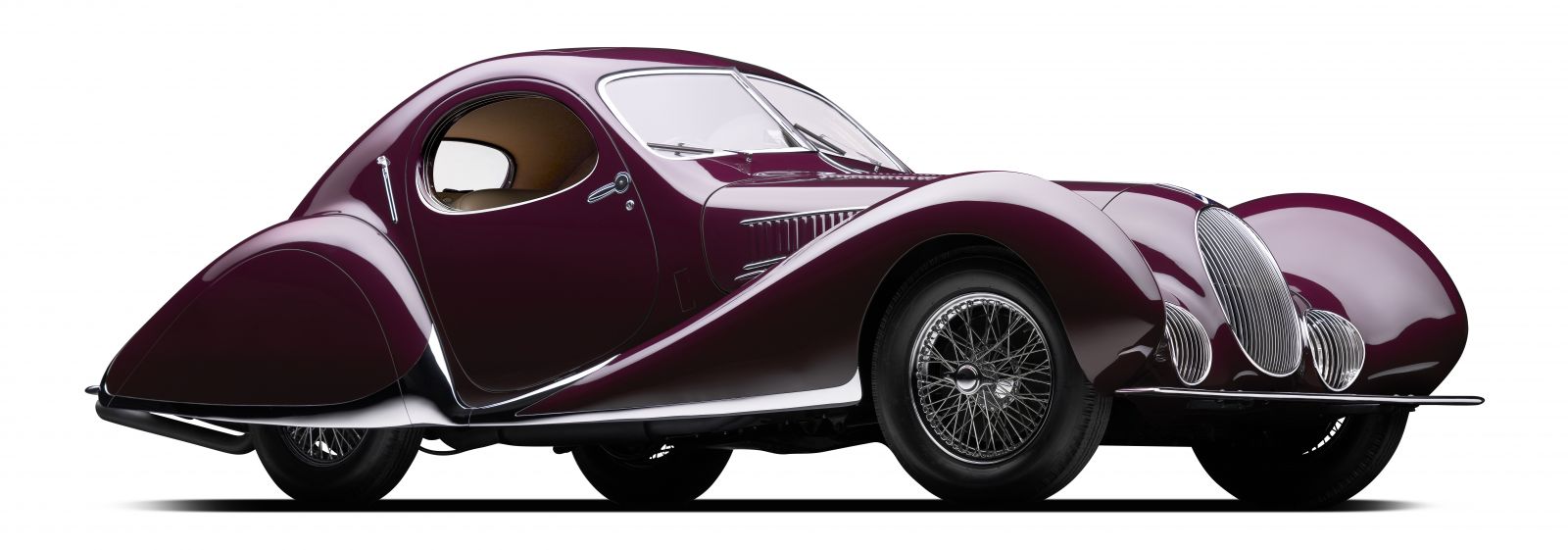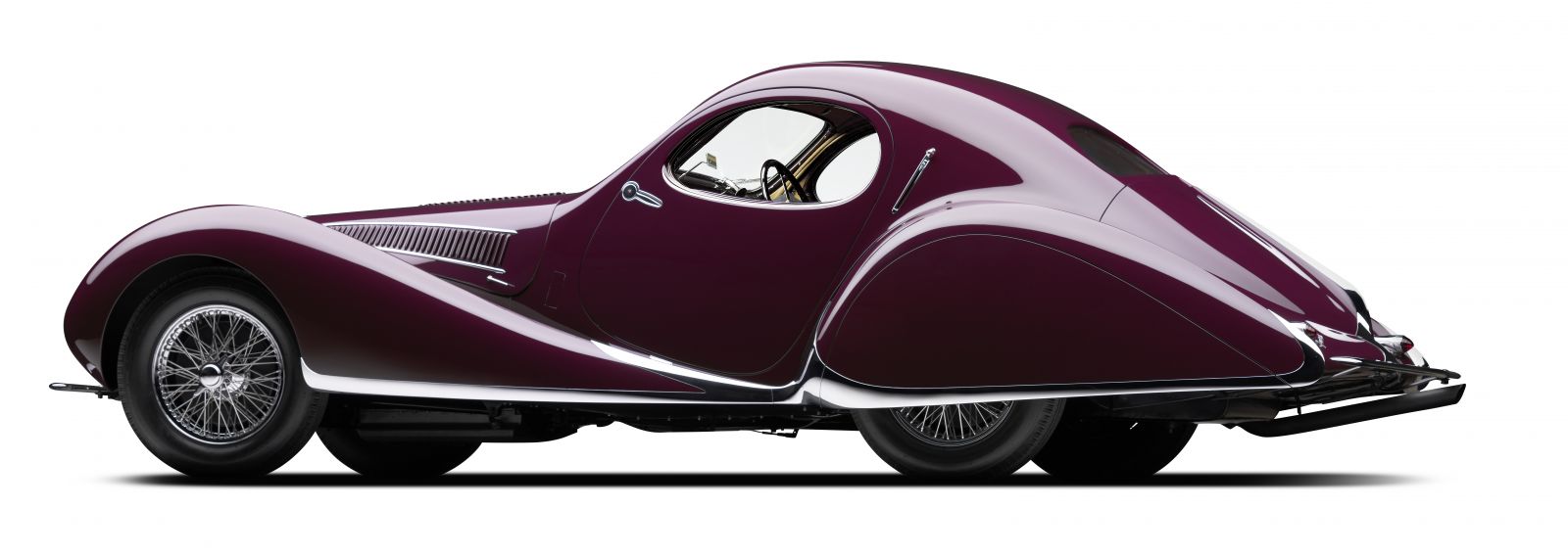 The 1937 Talbot-Lago T150-C SS, Chassis No. 90106 was originally purchased by Woolf Barnato, a financier and LeMans winning driver who went on to be the chairman of Bentley, and was later raced by American Grand Prix champion Phil Hill in 1978 at the Pebble Beach road races. The T150-C SS is an incredible example of both Art Deco styling and French technological innovation during the interwar period. The Goutte d’Eau featured a powerful 4.0 liter inline six with hemispherical combustion chambers that made it among the most powerful sports cars of its day. It also used the technologically fascinating Wilson pre-selector gearbox which allowed drivers to select what gear they wanted to be in for the exit of a corner, for example, and then merely dip the clutch to shift gears when they were ready. The Goutte d’Eau’s famous body was designed by French coachbuilder Figoni et Falaschi to resemble the teardrop, a shape that they considered to be perfect. The result was an incredibly aerodynamic shape that brought with it staggering beauty.
