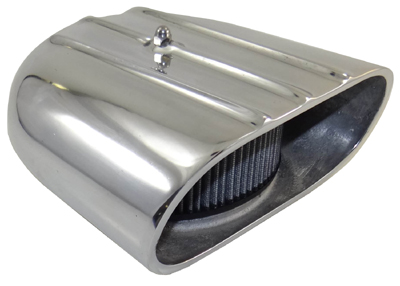 Their latest 4-barrel offering is this short version of their traditional “scoop” style air cleaner. It has a standard 5-1/8” neck and comes fully polished as you see here, with all the necessary mounting hardware. Like the rest of the air cleaners from O’BRIEN TRUCKERS, it also features a lifetime washable element.
