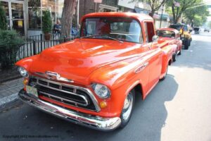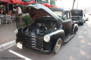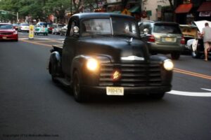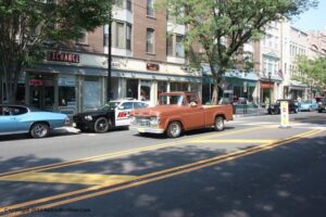 The turnout at the 6-29-2012 Somerville N J Downtown Cruise Night wasn’t it’s usual robust self, but then again, 95 degree plus temperatures, and high humidity, certainly played a major role in the somewhat diminished vehicle turnout. Despite the unpleasantly hot and humid weather, most of the main drag in Downtown Somerville (Rt 28), was filled with a variety of classic cars, trucks, and motorcycles, with a small contingent of Streetrods, Hotrods, and modified vehicles rounding out the vehicle showing.