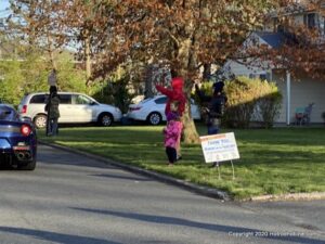 A quick gathering as we all practice safe social distancing! Everyone riding by and Honk, Wave, Scream Happy Birthday.