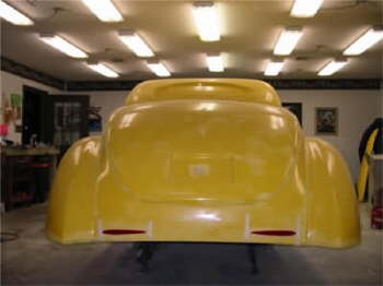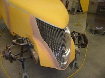Many people don’t realize that when you build a car with a fiberglass body there is always a certain amount of work that needs to be done to the body in order to make it smooth and to make everything fit so that it looks good when painted. That’s why some bodies are better than others… the amount of finish work required can really add to the cost of your rod and can make a big difference in not only how it looks when finished but in how it rides and holds together.