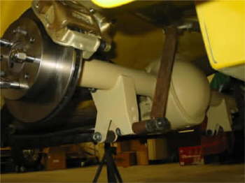 The rear axle assembly back under the car after it had the shock 4 bar mounts welded on it was also: sandblasted, disassembly checked and fitted with new bearings seals and gaskets.