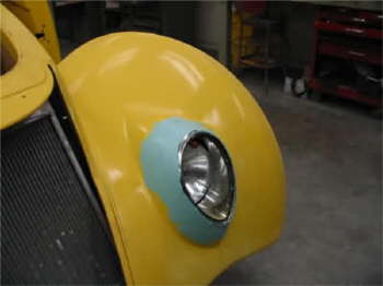 Headlight bucket after the TIG welding in new piece of sheet metal and a little body work.