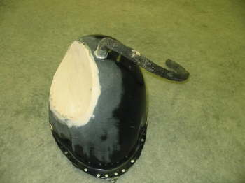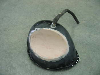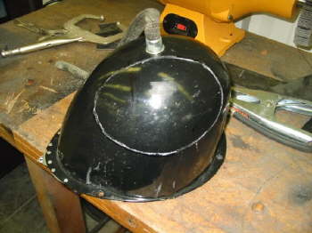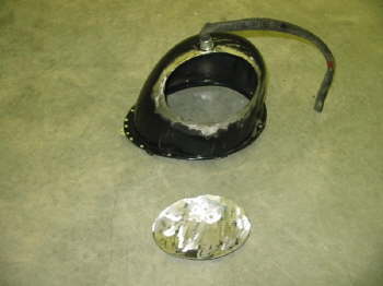 Shot of the vintique healight bucket in the process of being modified for the wheel/tire clearance.