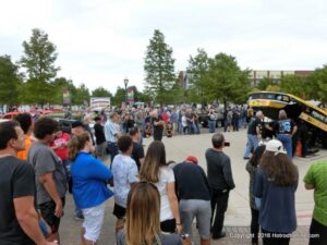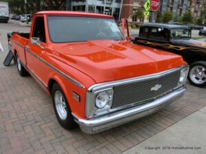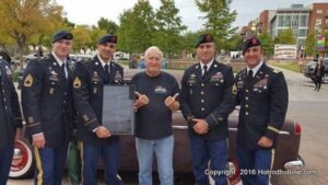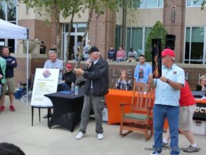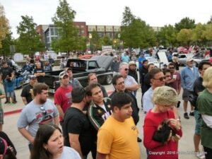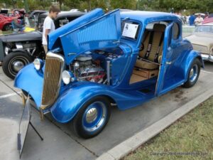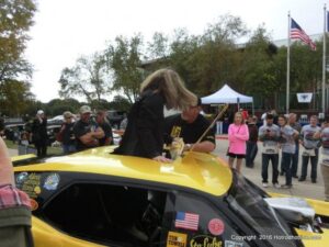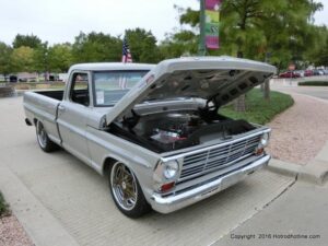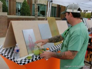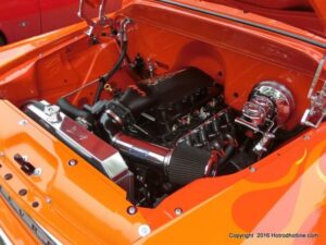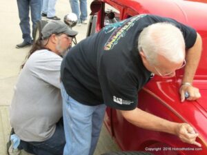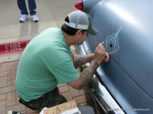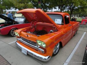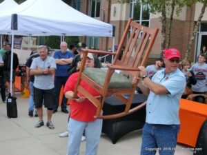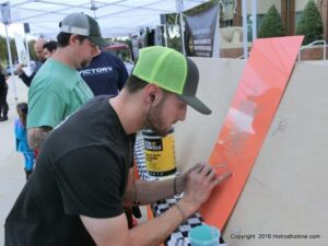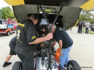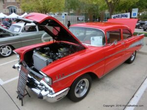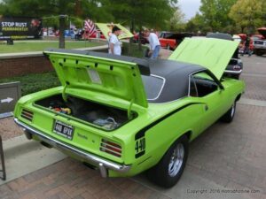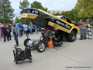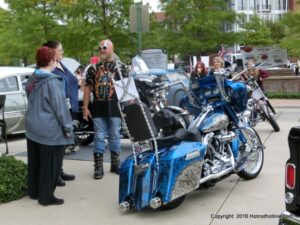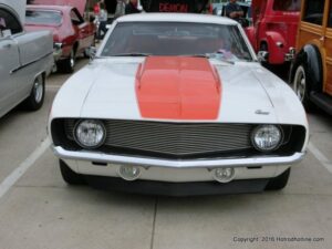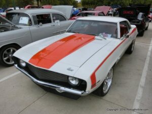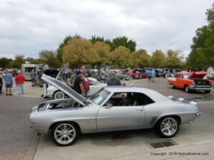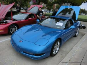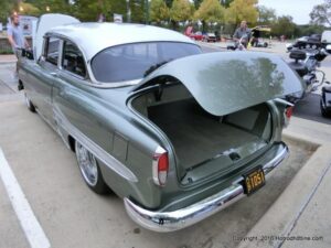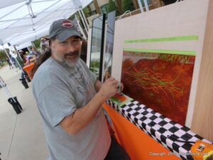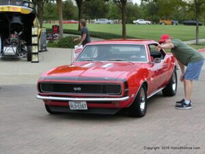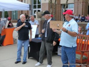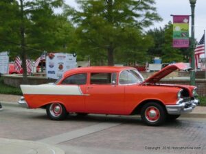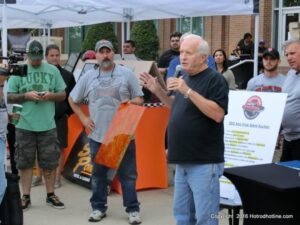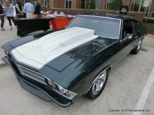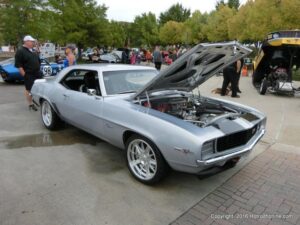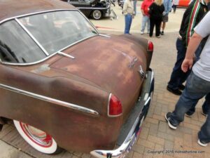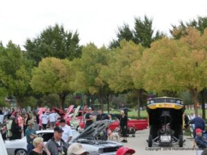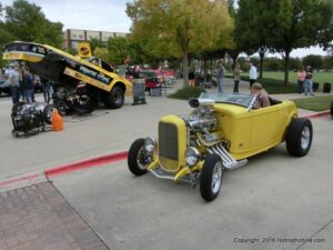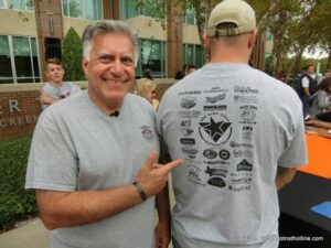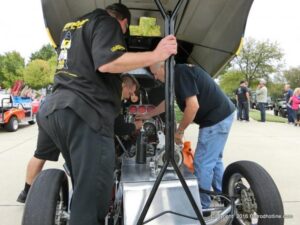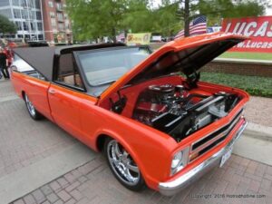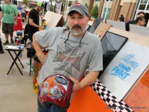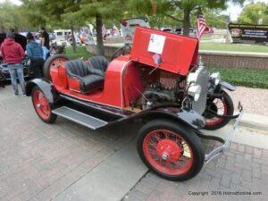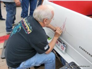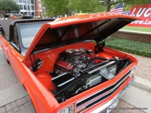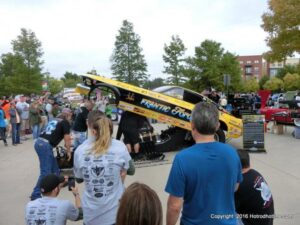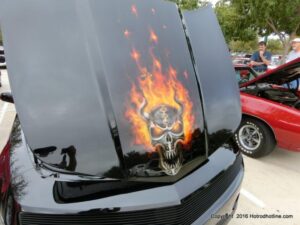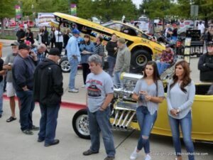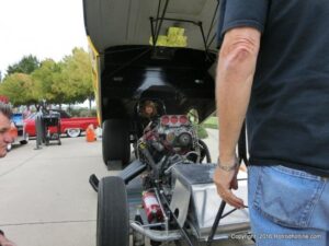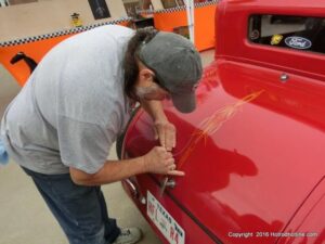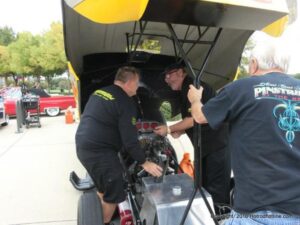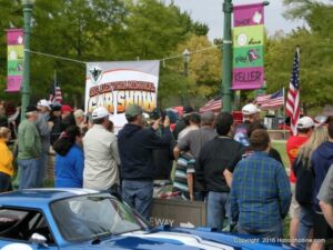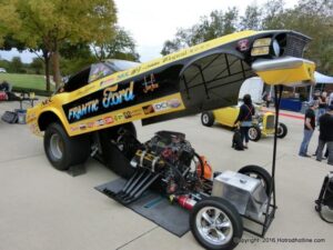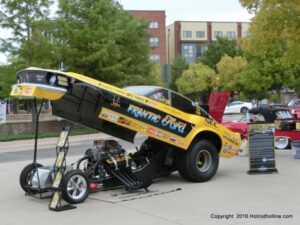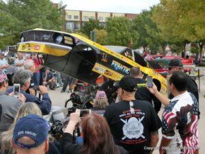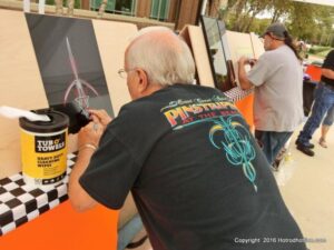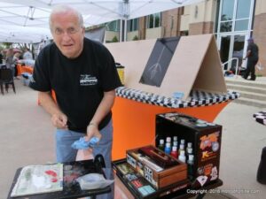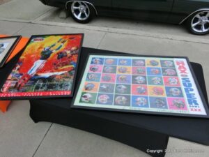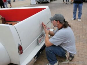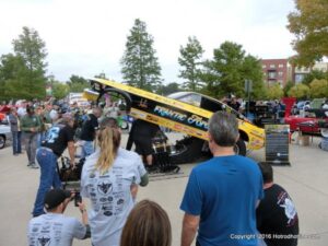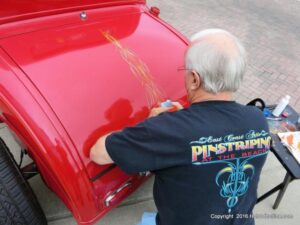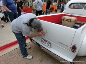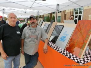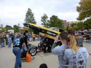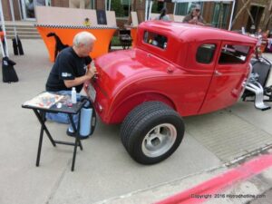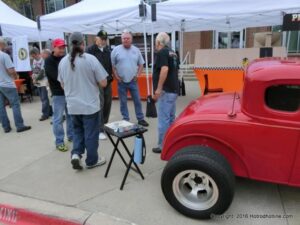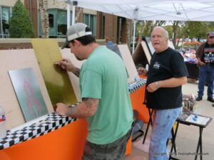 The cars and crowds started to fill the square with over 225 cars, trucks, and motorcycles. This year’s event featured the FRANTIC FORD FUNNY CAR making NITRO for the crowd; it even had Frank’s wife Peggy in the seat. There were Live & Silent Auctions and Art Schling and friends doing his brush magic in the pinstripes gallery.