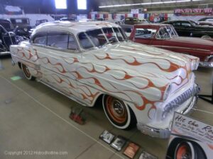 I’m Still Cruzing the Grounds of the GNRS. I made it over to the SUEDE PALACE presented by ROD AND KULTURE ILLUSTRATED. This building housed everything from old rods & customs still retaining their original paint….or what’s left of it….Cars in suede painted cars, vintage race cars, pin-up girls and loads of vendors. Thanks to Axle for the great selection of cars & trucks inside & out ..NJoy the shots ………… Big Al