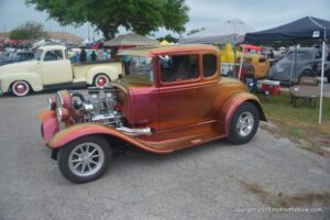 The Austin LoneStar Round Up April 16th through 18th. It was a very cool car show and had it all from a cool Kickoff party & BBQ hosted by the Meatheads to Thunderbolts and Continental car clubs at Old Beyersville Hall. Friday was the Austin Roundup, and what a show with 1700 hundred hot rods and customs, plus live music all weekend long with the best bands. There was an amazing swap meet, plus mini bike nationals; the best riders raced for two days maybe three days all competing for the big prize. Lastly the also had an art show with pinstripers on hand and a very big vendors center.
