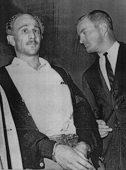 “One-eye” Bobby Wilcoxson is brought into a court hearing on November 15, 1962. He shot and killed a bank guard in Dec. 1961 and was later sentenced to death. He died while in prison before the sentence was carried out.