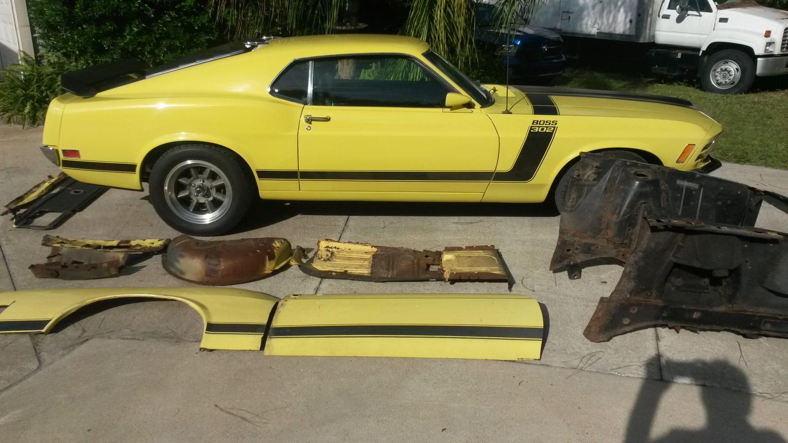 The engine rebuild consisted of a “.30” over with Crane cam, roller rockers and a Cobra 7.5 qt sump. Hooker headers (Jet Hot coated) expel the gasses out the 2-1/2in exhaust with x-pipe.While there were approximately 7300 of these cars built (this car had a build date of April 30, 1970), this one has Parnelli Jones signature and Bill Barr’s, who was the Ford engineer who designed the original Boss motor. This occurred during the Ford introduction of the then current BOSS 302R at Daytona in Jan 2010. Mellow Yellow perhaps, but there’s nothing mellow about this car as it sounds, smells and feels like it could be the poster child of the late 60’s; Woodstock, engines reverberating at the road course of Watkins Glenn and so much more. I think that’s why all these cars are so desirable – it’s a time we are all trying to relive in one way or the other. This BOSS certainly does it and is a #1 Hit with us for sure!