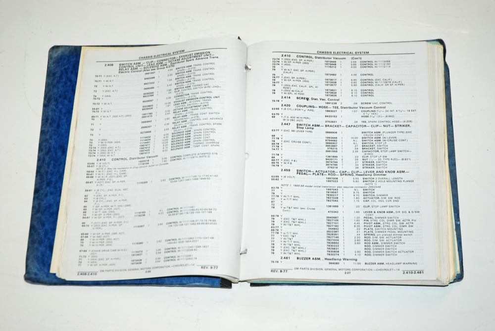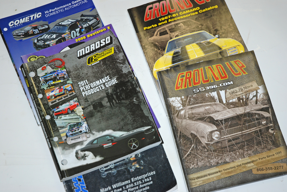 Figure out what you have. Vintage OEM parts catalogs, restoration company catalogs, speed shop catalogs and a dog-eared Hollander Interchange manual are resources we use to establish the exact identity of the pieces.