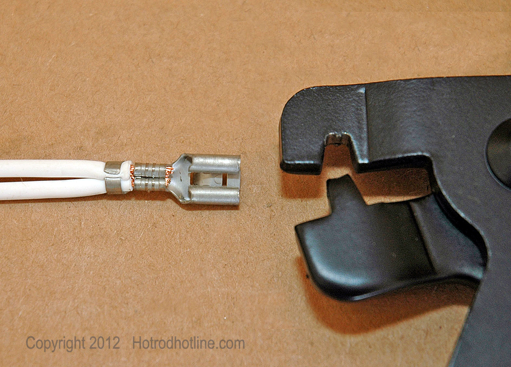 This W-style crimper is needed to make the folded-style crimp connection on the pins that are supplied for insertion into the connector plugs. Standard style crimper used on butt connectors will not make this type of crimp. Inexpensive crimpers like this are available at any good auto parts store.