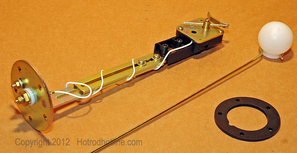 Fuel gauge sender unit for the new electrical gauge included with the kit has a two-part extension arm that adjusts to accommodate the variable depth of different fuel tanks. Also includes new style float and a rubber gasket for the standard 5-hole mounting plate.