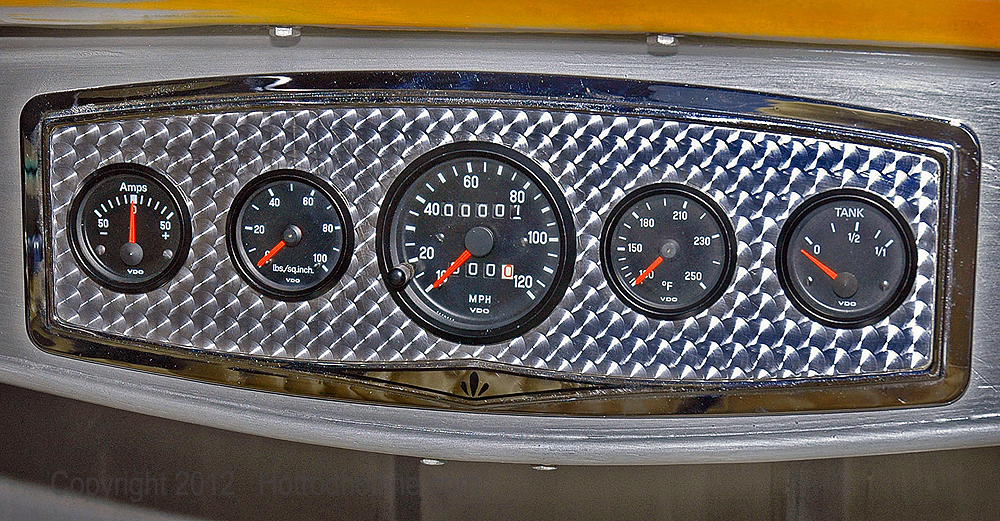 Here is the finished dash with the new electrical style VDO Cockpit series gauges. The original styling was maintained but with significant upgrades like the programmable speedometer that eliminated the need for a speedometer cable and a change from an ammeter to a voltmeter.