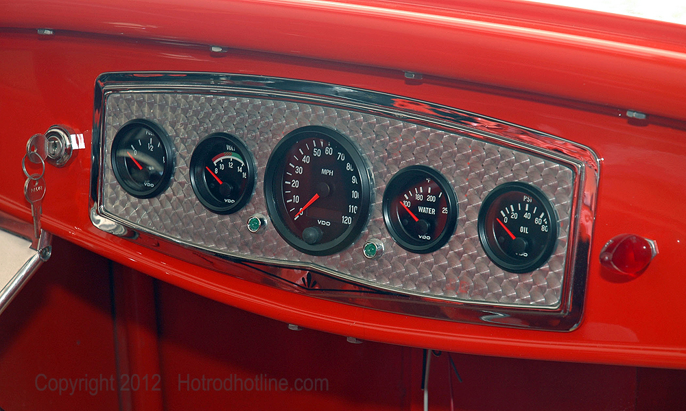 I ran mechanical gauges in my small-block Chevy-powered Deuce Vicky for eight years without any problems. They survived the drive from California to New York in ’62 and the return drive when I moved back to California in ’65. However, I didn’t like the large hole that I had to make in the firewall to route the copper tube for the oil pressure gauge and thermo-couple for the temperature gauge. My highboy has nothing but throttle linkage poking through the firewall so I wanted to avoid routing anything else through it.
