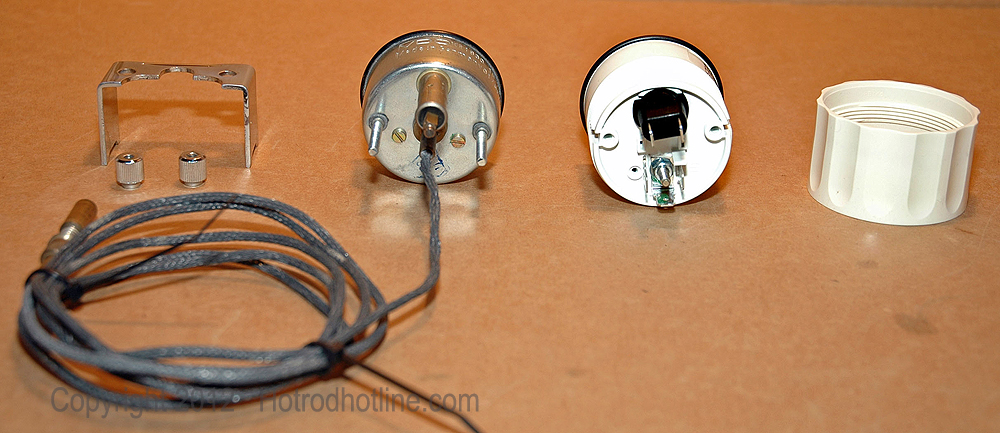 Mechanical oil pressure gauge is connected to the engine oil galley via a nylon or copper line requiring that a hole be made in the firewall to route the tube through. I had mechanical gauges in my ’32 Ford Vicky and experienced no problems with them but the installation of the new electrical one is much easier and cleaner.