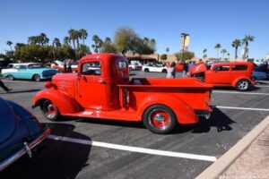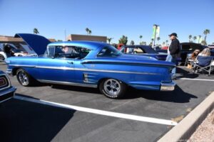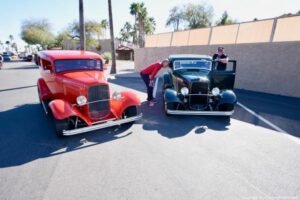 Valle del Oro Active Adult Community at Cal-Am-Homes held a cool car show mixed in with a Mardi-Gras Celebration with live music on the patio, 25-cent beer and lunch. It made quite a day in the AZ sun; they had about 125 hot rods and cars from all over the USA and Canada. Very cool to see; we had a great day shooting this cool show.