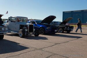 The Memorial Day warbird auto show and swap meet went off with a ton of cars and participants at the Front range airport at Watkins Colorado. located east of Denver just north of I 70. It turned out to be one of Colorado`s finest days in the last couple of weeks, I think that almost everyone in the metro area showed up for this get together, at one time I heard they had run out of parking spaces and had to turn a few folks away. they had scheduled a visit by a couple of f 16 fighters to land for a few hours, but something didn`t work out and all we got was a couple of low level flybys, and that was ok with everyone at the show. everyone enjoyed the show and the planes, plus the bonus swap meet………..