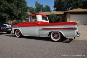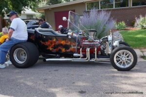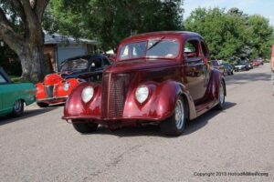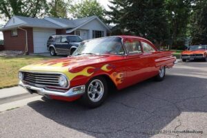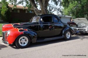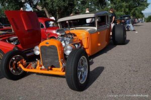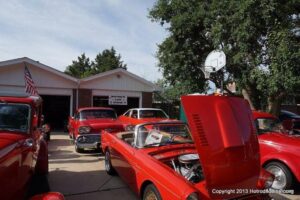This is a local neighborhood show that is held once a year in Littleton, Colorado by an individual that was an engine builder before retiring. He calls it Wayne’s potluck Brunch and Car Show. At times, he has had a couple of hundred cars show up. I was lucky enough to catch up with about 85 of them last Saturday. It is held at his house and as you can see, it has a good turnout each year.