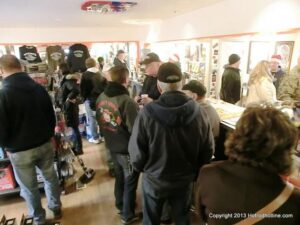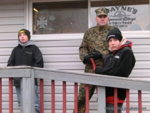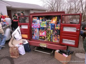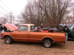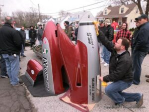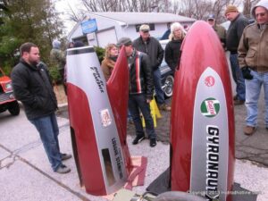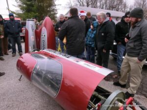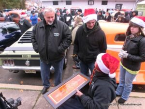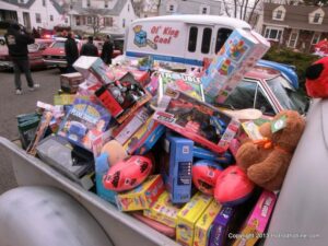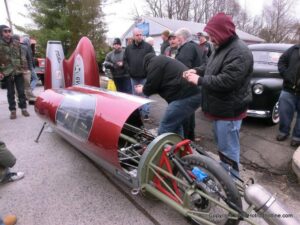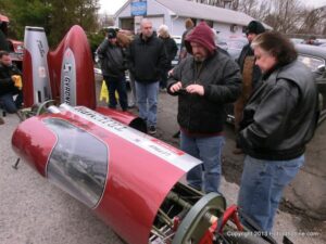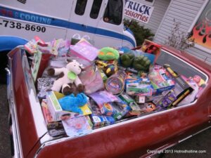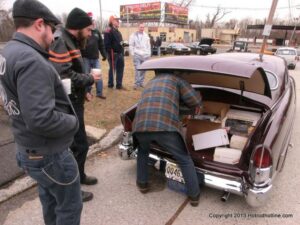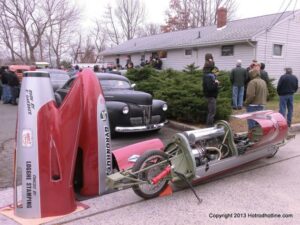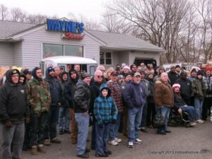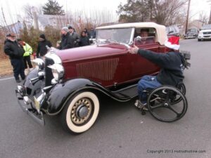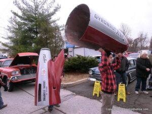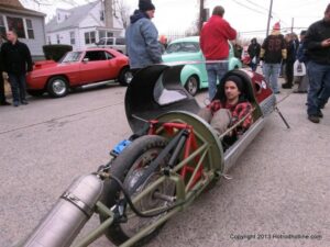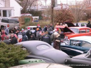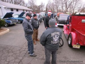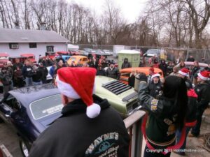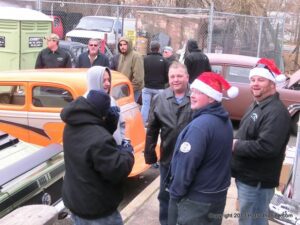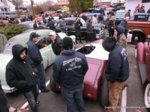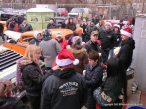 What a way to end the season before Winter at WAYNE’S SPEED SHOP 4th Annual Toys for Tots Run Hot Rod Gathering . With the chance of freezing rain, snow and temps all morning in the 30’s. This place was packed and the Toys kept filling up by the truck loads. Great showing of local hot-rodders and even the boys and girls from PA, NY came out for this great cause. The Auction drawn a big crowd bidding on some great pin striping by Hot Rod Jen and other. Over 2000 toys collected and $4500 in cash from auction Rob Ida who is handling the restoration of Gyronaut X-1 “World Fastest Motorcycle” was on hand to show off this historic machine. Thanks to John & Brian and the staff of Wayne’s & the US Marines Toys For Tots for a Great Time ..NJoy the Pics..Big Al