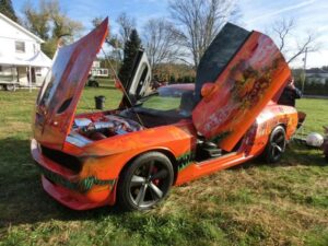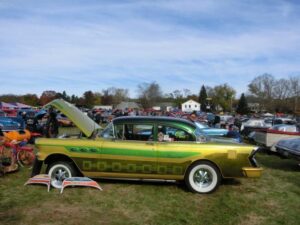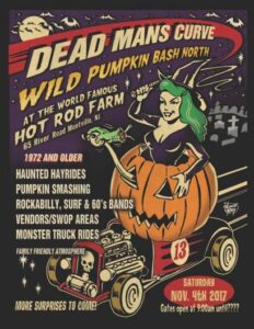 Doesn’t get any better than with DMC boys’ inaugural WILD PUMPKIN BASH NORTH at the WORLD FAMOUS HOT ROD FARM. What a turnout by late afternoon – over 800 cars and trucks jamming the farm. Everything from haunted hayrides and monster truck rides to a swap meet, funny cars and more!